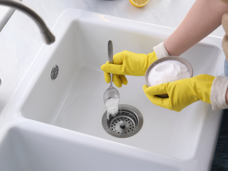 Baking soda là một chất tẩy rửa tự nhiên và an toàn cho môi trường. Bạn có thể dùng baking soda để làm sạch bếp, chậu rửa, và các vật dụng khác trong nhà mà không lo gây hại cho bề mặt hay da tay.