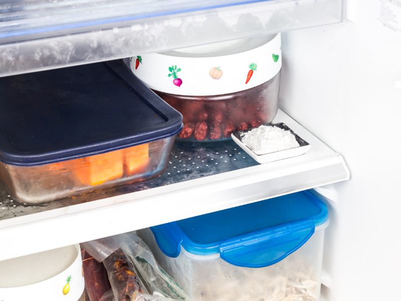 Mùi tủ lạnh luôn là một vấn đề khó giải quyết của những chị em nội trợ. Đồ ăn được lưu trữ hoặc để qua đêm sẽ để lại mùi gây khó chịu, thậm chí còn có khả năng ám mùi lên những thực phẩm khác. Đặt một hộp nhỏ baking soda trong tủ lạnh sẽ giúp hút và loại bỏ các mùi hôi, giữ cho tủ lạnh luôn thơm mát. Baking soda hoạt động như một chất hấp thụ mùi tự nhiên, làm cho các loại thực phẩm trong tủ lạnh không bị lẫn mùi với nhau.